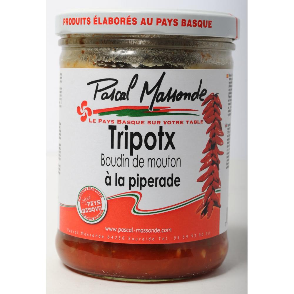 Le tripotx est traditionnellement un produit dit de « récupération » car issu de l’abattage des animaux à la fin de l’automne au moment où le bétail est le plus gras. Au sein du Pays Basque, la composition du tripotx varie d’une vallée à l’autre. Les tripotx sont traditionnellement servis en entrée lors des méchouis de nos fêtes locales.